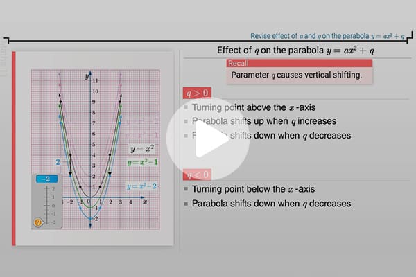 Revise effect of a and q on the parabola y = a x2 + q